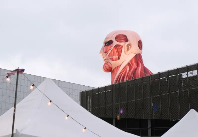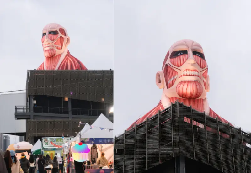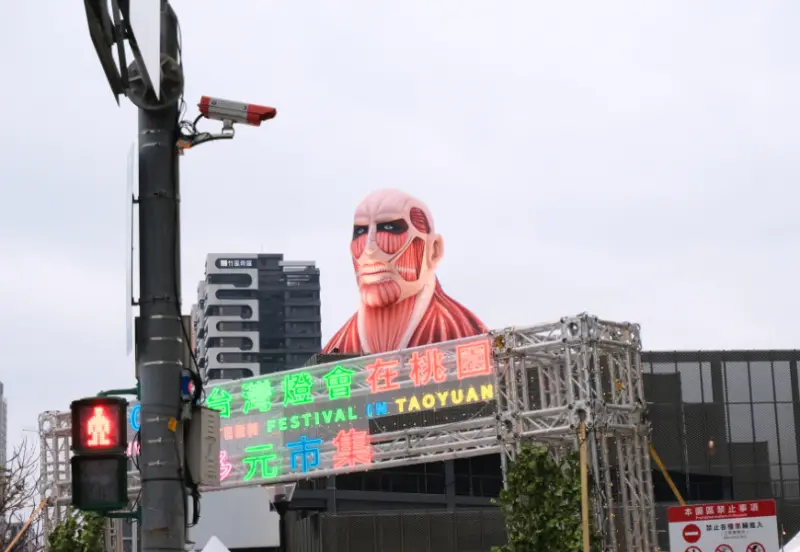 進擊的巨人也是這次桃園燈會的一大亮點,環球購物中心旁,非常醒目的巨人,遠遠就能看到,還會隨風搖擺,看起來特別逼真!