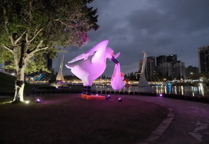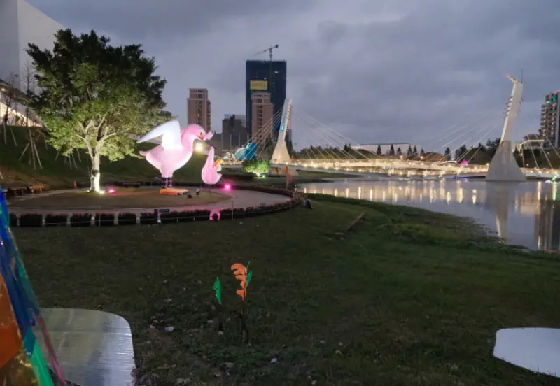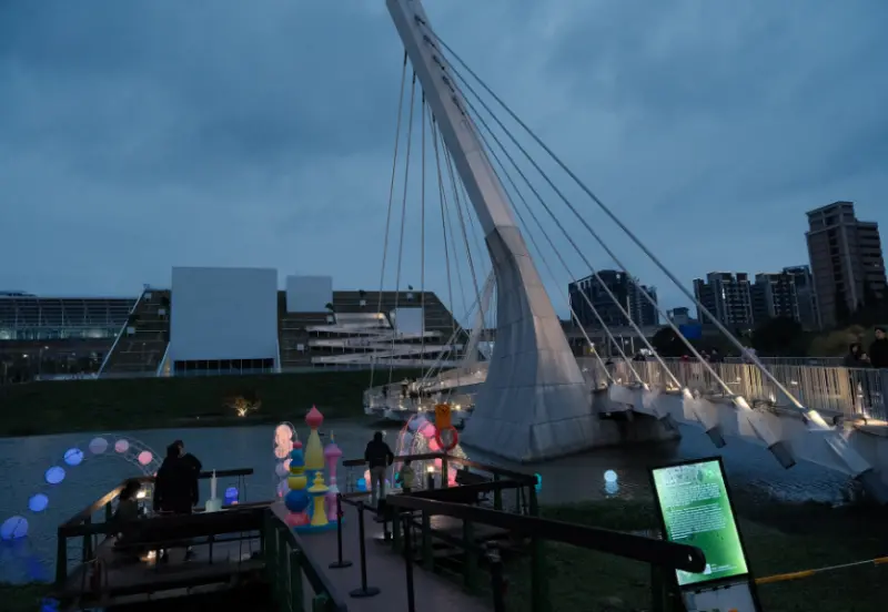 2025桃園燈會規畫雙展區,除了在高鐵桃園站附近的主場外,更吸引我的是有寶可夢的A19桃園體育園區站-光的遊戲場,因為這邊沿著洽溪路、兒童美術館,進入青塘橋、環湖步道,不僅有燈光展演還結合了水域生態,特別浪漫迷人!
