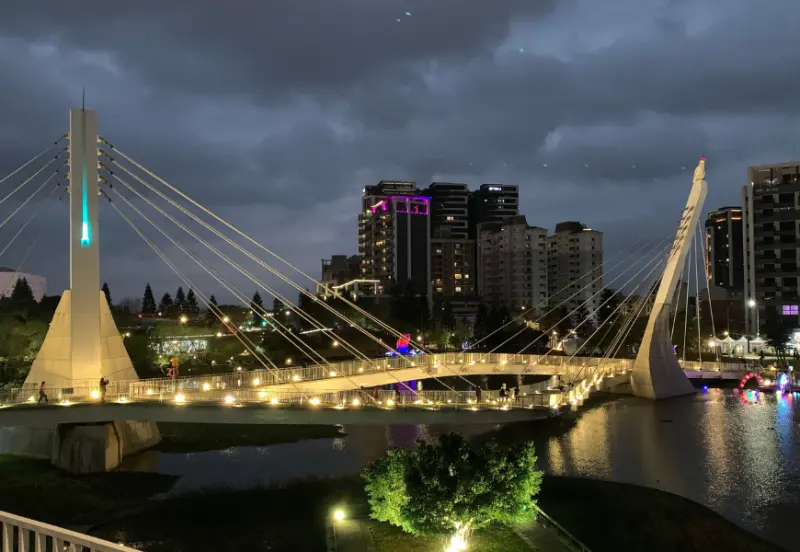 拍照攻略:這區越晚越迷人!建議大家先在橋邊的步道取景,可拍到美麗的青塘橋與對岸的高樓夜景,再上橋拍攝有不同的風格喔!小提醒:千塘橋有單向管制,上橋後不能往回走,不然就要繞外圍步道一大圈…我們東西掉在步道,結果只好過橋後再繞一大圈去找回來,傻眼,大家要看好自己的物品喔!