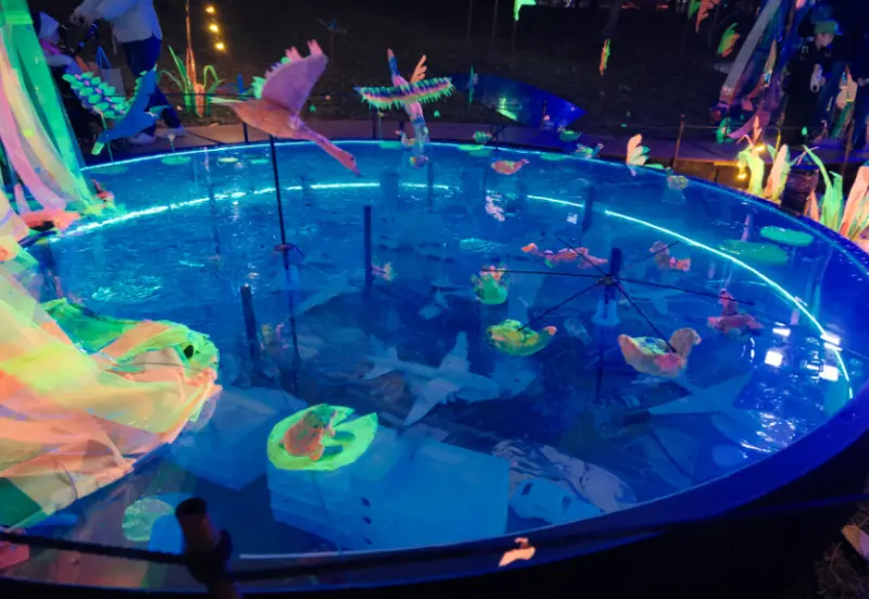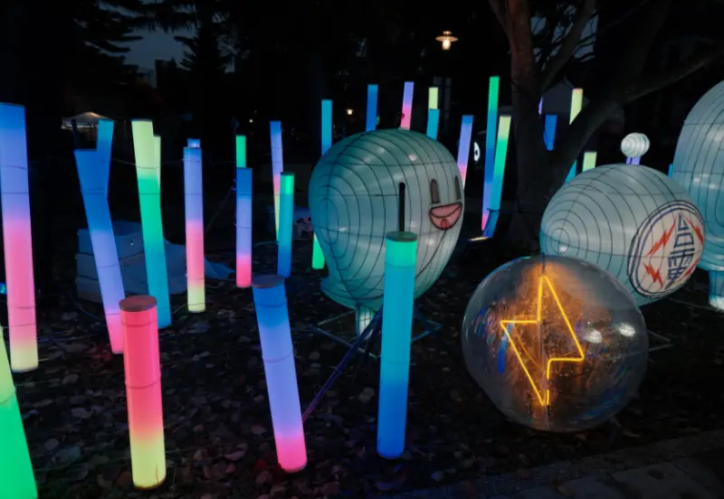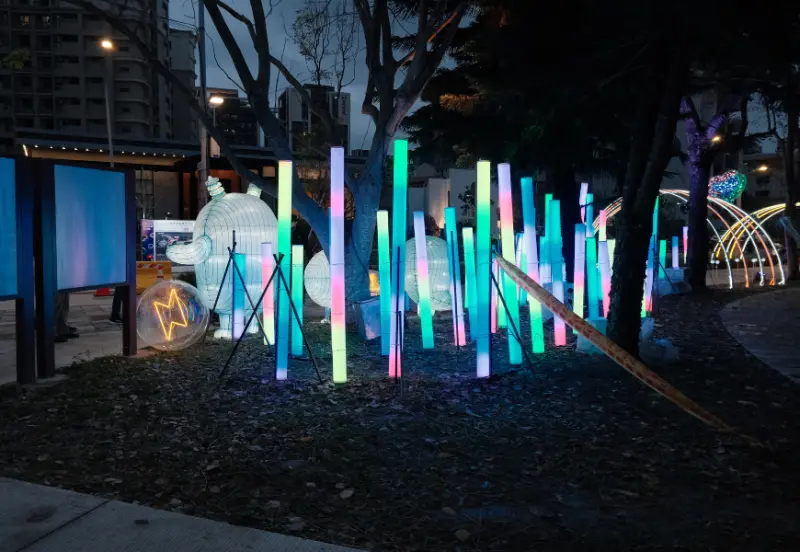 環湖步道上也有不少美麗的燈光展演,像是下圖的「千塘.光池」就像縮小版的千塘湖,以彩色光影重現生態之美。