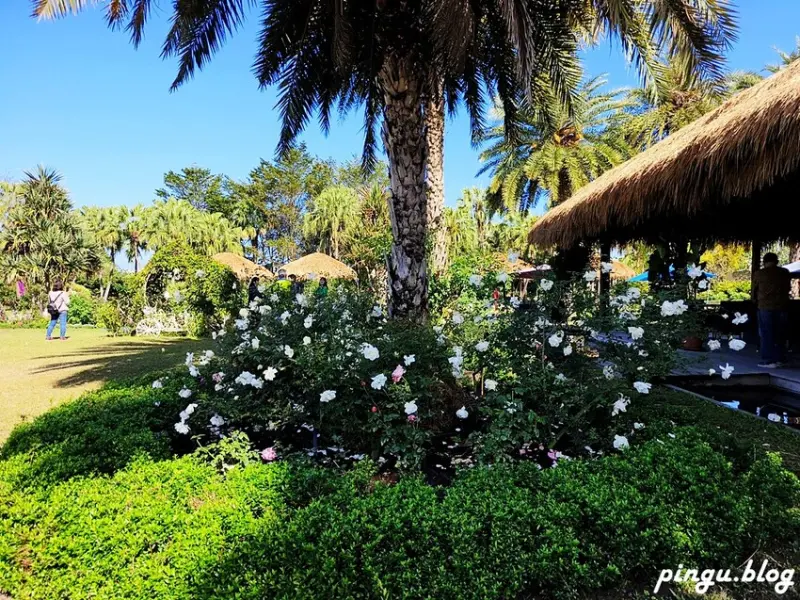 斗六雅聞峇里海岸每年都有玫瑰花季,區域就在峇里島草原風景區,充滿峇里島風的大草原區兩側都種滿著紅、白、黃、粉各色玫瑰花鮮豔奪目,更為南洋風情的景色增添了浪漫唯美的氛圍~