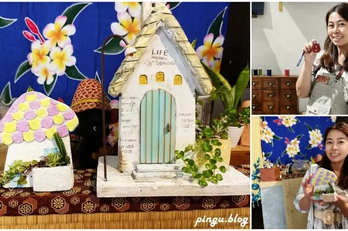 往峇里島草原風景區走會先經過療癒泥作展演,共有六座泥作藝術品,搭配著多肉植物非常的療癒~
