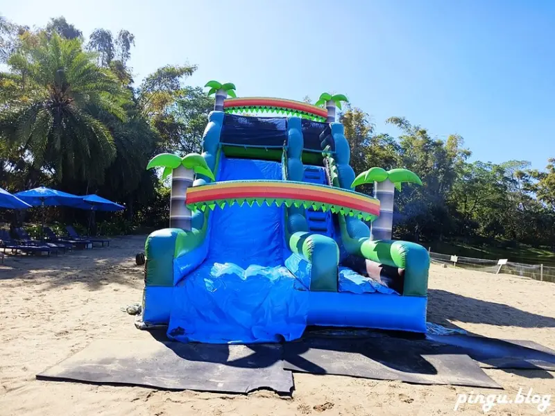 雅聞峇里海岸有一整片的國內首創的人造沙灘區,如此大片的沙灘區讓人彷彿置身於峇里島,這也是雅聞峇里海岸園區的一大亮點,小朋友可以在沙灘區盡情的玩沙,不定期還有大型氣墊可以玩,免費門票進來還有這麼一大片的沙灘可以玩沙,真的是太佛心了~