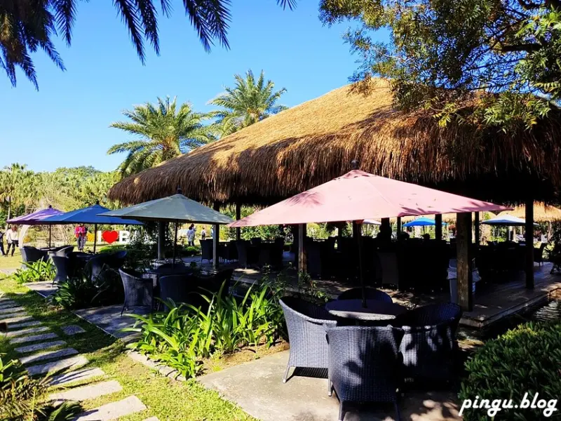 峇里島草原風景區有許多充滿南洋風的茅草屋、棕梠樹,以及露天咖啡座在大草原旁,可在這裡稍作休息或用餐,感受峇里島風的悠閒氛圍,來趟偽出國之旅~~