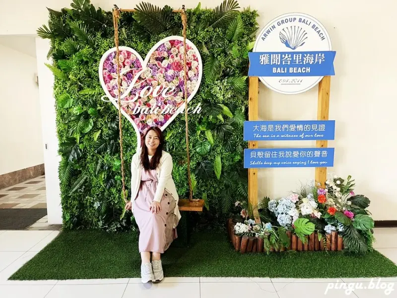 雅聞峇里海岸入口處是一個充滿峇里島風的茅草屋,還未走進園區就能感受到濃濃的南洋風情,門口邊有著五位女神的迎賓瀑布,還有我愛雅聞的裝置藝術,拍起來真的很像在國外呢~