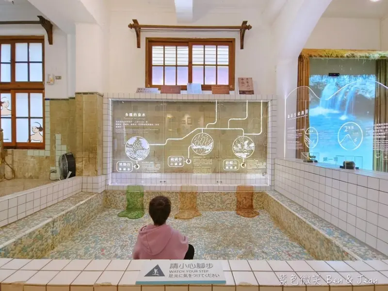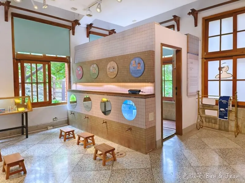 一旁利用不同的空間展示北投溫泉的相關歷史,也有一些刷子、水瓢和水桶等很生活化的泡湯用品