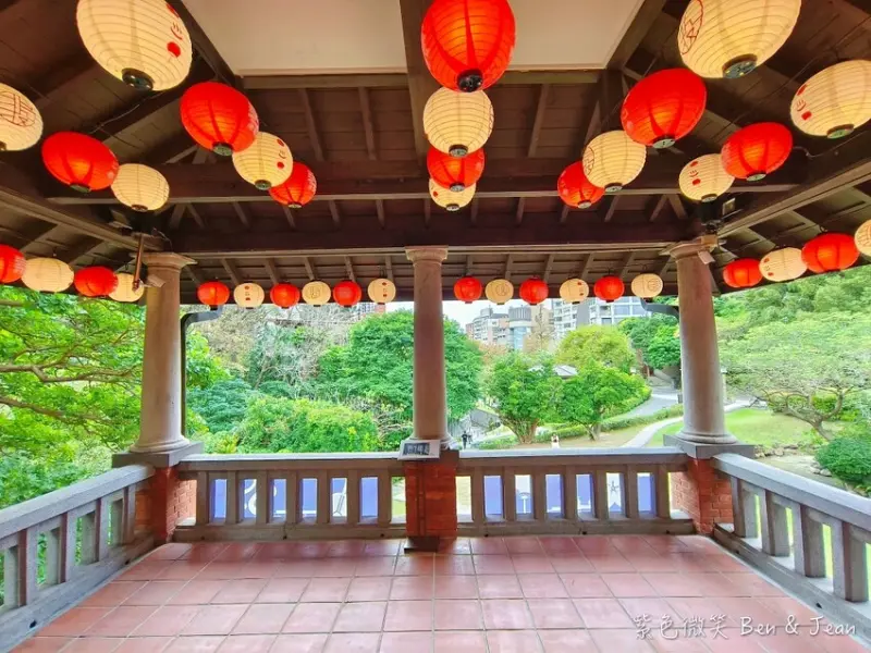 這裏是「望樓」,可以看見一旁邊綠建築的北投圖書館,以及綠蔭盎然的北投公園,站在這裏有大戶人家的感覺