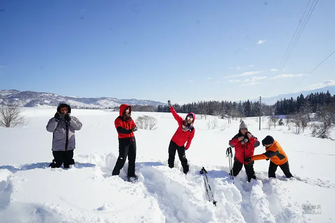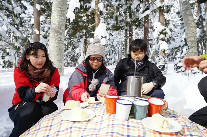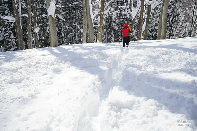 長野縣飯山市入住【鍋倉高原森之家】なべくら高原.森の家的隔天清晨,就是這次的雪地健行活動,短短的一段路,我們可是花了近二個小時才走完。穿著雪鞋真能體會什麼是寸步難行啊。不過,在銀白色的世界裏漫步,四目所及都是白雪皚皚,對我們台灣人來說,真的好難得啊。Nabekura Kogen Mori-no-ie住宿,戶外走在櫸木森林中再來個雪地野餐,真的好讚!!