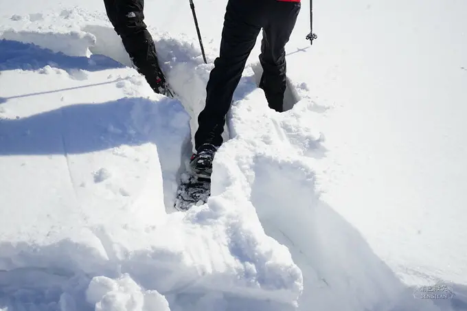媽呀,這裏隨便一踩都到膝蓋左右的深度了!! 穿著雪鞋陷在裏面還真拔不出來呢!