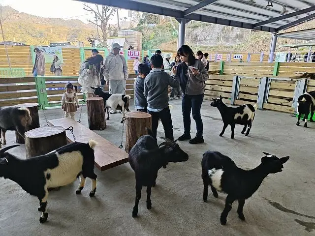 服務人員很親切的引導遊客,跟大家說可以抱小羊。