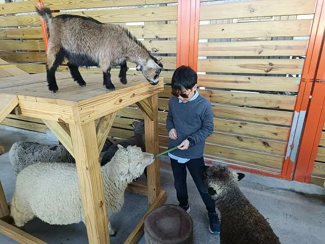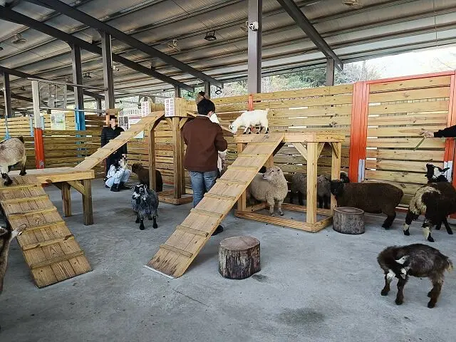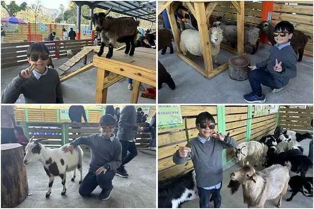 接著我們來到羊兒區,主要有侏儒山羊、泰迪羊和昏倒羊,這一區有超多木製遊戲空間,都是給小羊活動的,小小孩可別爬上去玩啊!