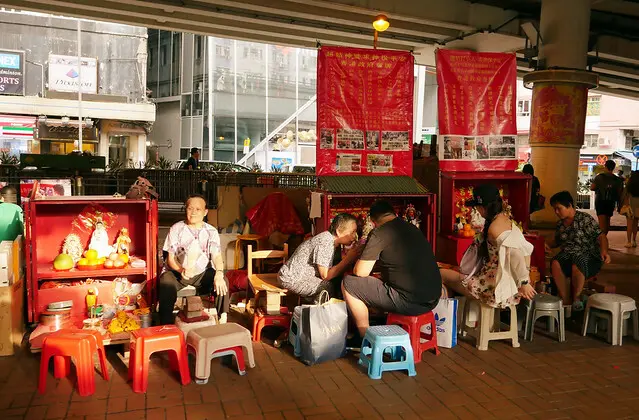 -->銅鑼灣鵝頸橋下觀看"打小人"奇景