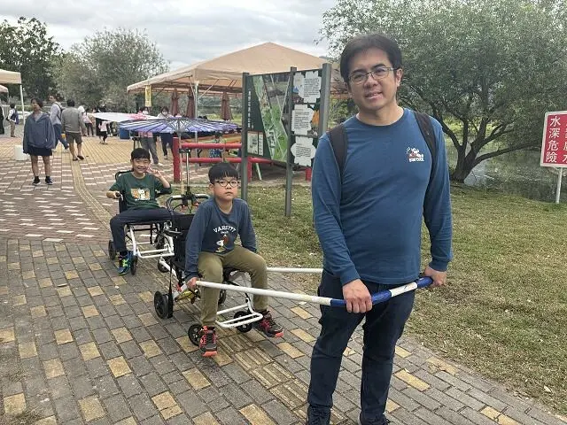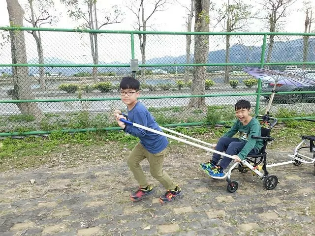 池畔區還有一個人力拉車的設施,滿有趣的。不過要由大人操作比較安全,佐佑兩兄弟拍拍照後,就由我來拉車囉!