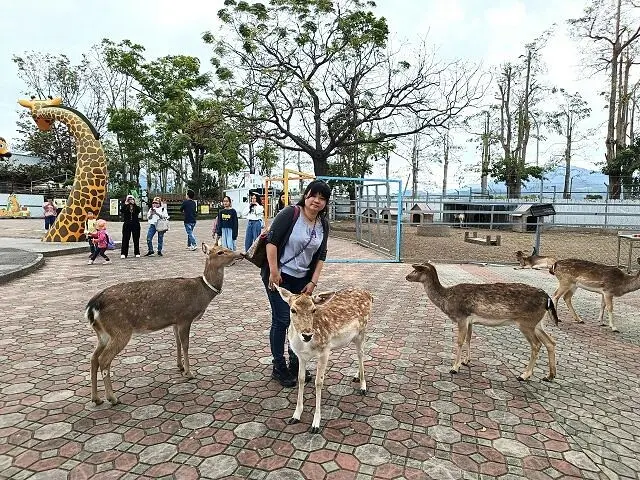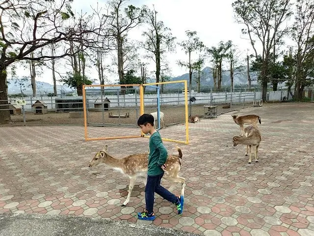 梅花鹿有看到我們手上有拿著飼料,會慢慢走過我們身旁,不過動作很輕柔優雅,被梅花鹿包圍的感覺很不錯。
