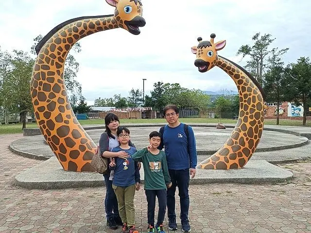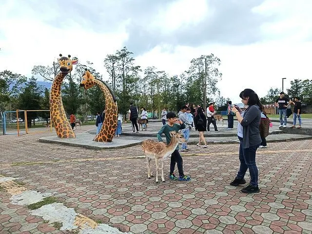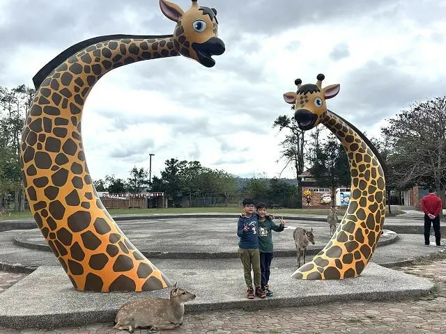 一進入「鹿野梅花鹿公園」,就看到很顯眼的長頸鹿,當然要拍照一下,一旁也有許多梅花鹿一同入鏡。這裡擺放長頸鹿的裝置藝術真的很特別,園區並沒有長頸鹿喔!