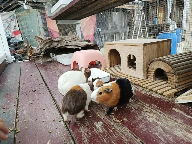 大家都跑去和梅花鹿互動了,天竺鼠和兔子顯得有些孤單。