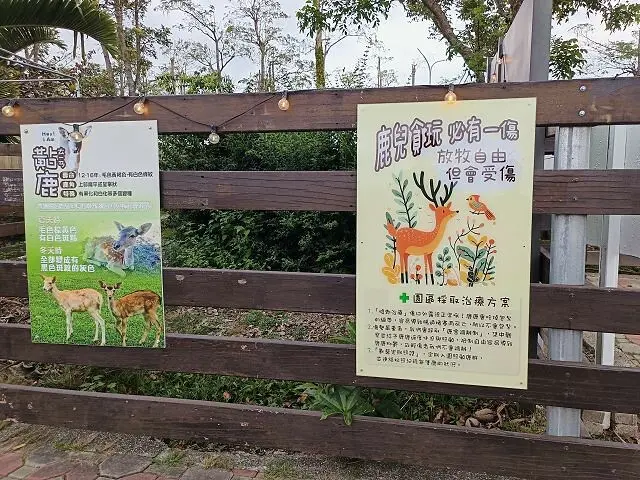 園區也有解說牌介紹梅花鹿的習性與保育知識,有提到部分梅花鹿因為受傷,會被隔離起來,無法和人群互動。