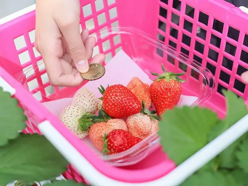 這裡的草莓因為是高架種植,所以採收的時候不用彎腰駝背,超方便!帶小朋友來體驗採草莓也不用擔心他們弄髒衣服。園區裡面有紅顏、白草莓和桃薰草莓三種,老闆「菓匠」會很貼心地跟大家介紹不同區域,讓大家更容易選擇,也能了解他們對草莓的用心和不同品種的特色。
