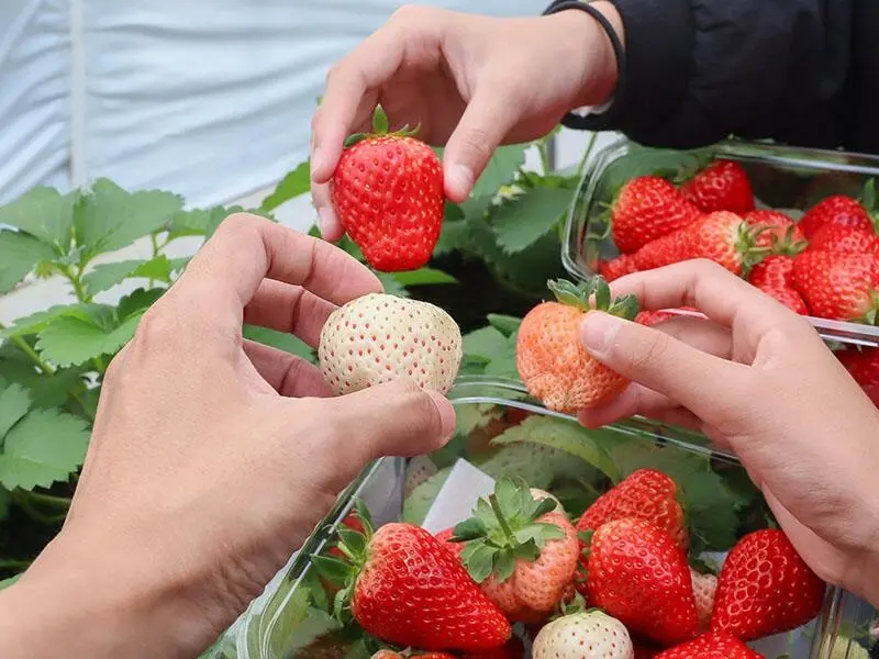 「菓匠農場」的老闆們真的很有日本職人的精神,特別引進了日本超人氣的白草莓、夢幻的桃薰草莓和經典的紅顏草莓這三種厲害的品種。他們堅持無農藥種植,讓大家可以安心採摘。而且他們的草莓是高架種植的,水水們穿漂亮衣服來也不用擔心弄髒,帶小朋友來也不怕他們亂跑,採草莓可以更輕鬆愜意。