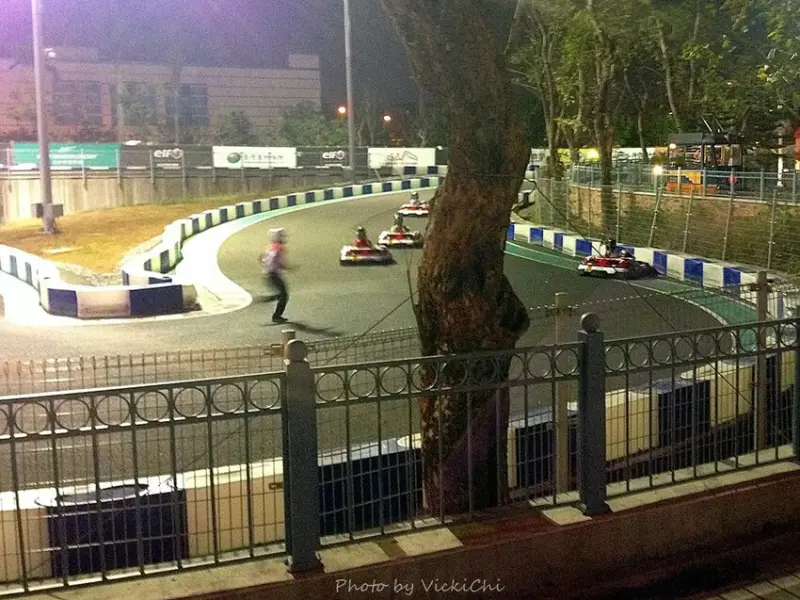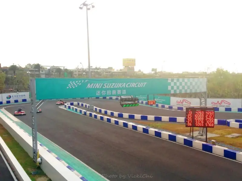 這個迷你鈴鹿賽道是鈴鹿賽車場在海外唯一授權的卡丁車賽道,它是以10:1的比例擬真縮小,全長總共有600公尺,而且還使用了法國進口的F1級護欄,每位駕駛員上場有8分鐘的時間,如果以單圈完成時間大約40~50秒來計算,每個人平均可以開8~9圈。從PIT區出發之後,沿途會經過S彎、德古納彎道、立體交叉、髮夾彎、湯匙彎、小直線、130R高速彎、減速彎,最後再回到直線區。