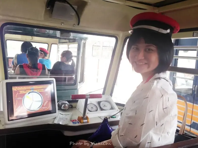 一台車最多可以坐4個人,還有列車帽子可以戴在頭上,讓你化身成可愛的列車長操控小電車,不過車廂有點小,兩個大人坐就差不多滿了,他說一台車可以容納4個人,我想應該是指4個小朋友吧。