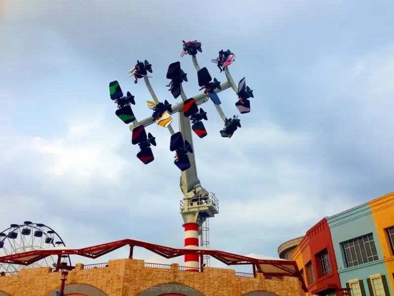 遊樂園怎麼可以沒有自由落體呢,這裡的自由落體除了會上下移動之外,到最高的地方還會旋轉喔。