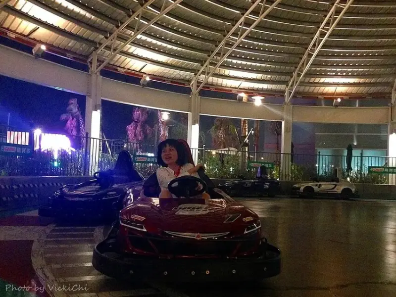 我們在樂園裡面逛的時候,有時候還會看到賽車道上有人的車子開反方向,需要救援。夜晚的草衙道電車超級可愛的,我在樂園裡面玩到都不想離開了。