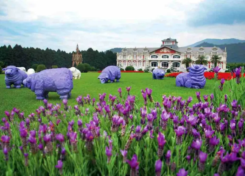 在薰衣草花海中央的噴水池,有如童話故事般的夢幻場景,不妨投入一枚硬幣,許下美麗的心願,期待美好事物的發生,何不把握住這美好的春天,到九族文化村巧遇你的Mr.Right呢?