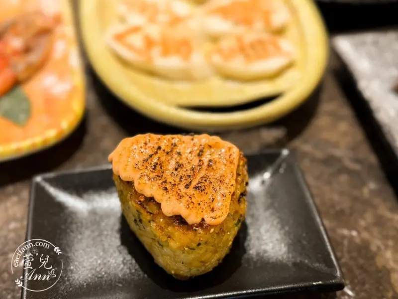 還有【炙燒明太子飯糰】,外層烤至帶點焦脆感,