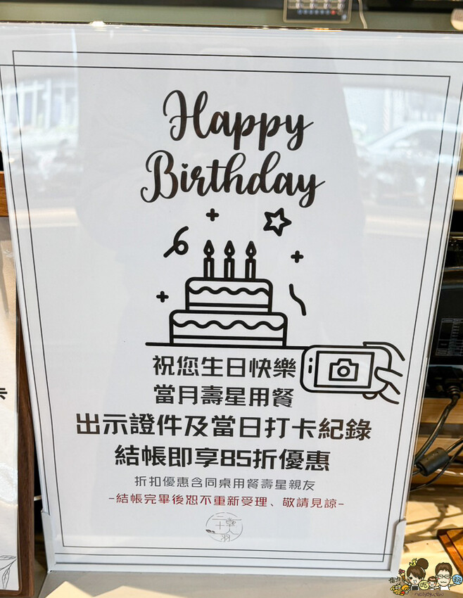 當月壽星用餐,整桌都享有85折!!太佛心了~