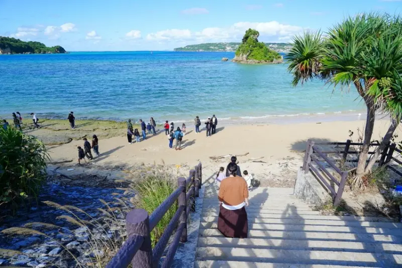 我們是12月底來沖繩,所以天氣算是冷的,這時候人不多,也沒什麼人會去玩水。如果是夏天的話,這裡肯定會熱鬧多了,應該會有很多人來這邊玩水吧!