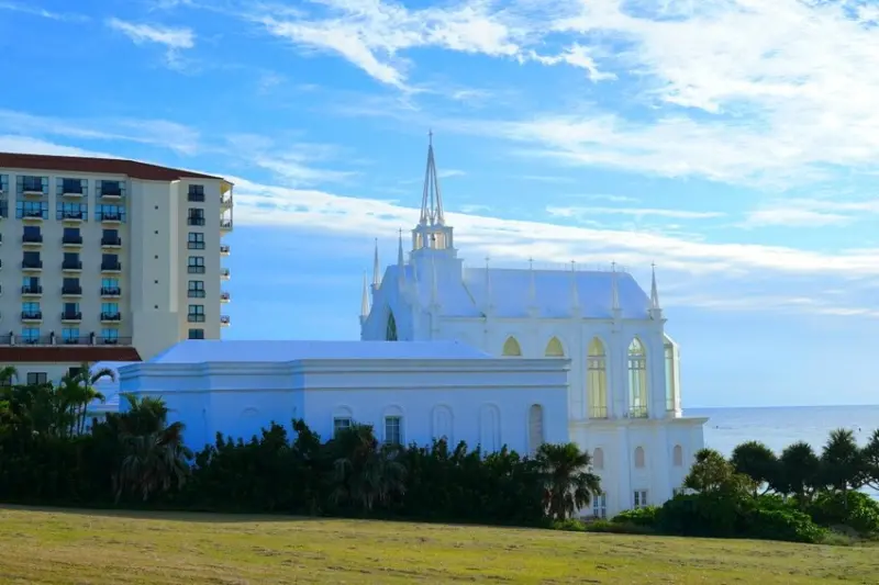 從海灘往裡面拍過去,景色真的美炸了!藍天、大海加上建築的設計感,怎麼拍都超有氛圍,隨便按幾下快門就像明信片一樣美,完全讓人拍到停不下來!
