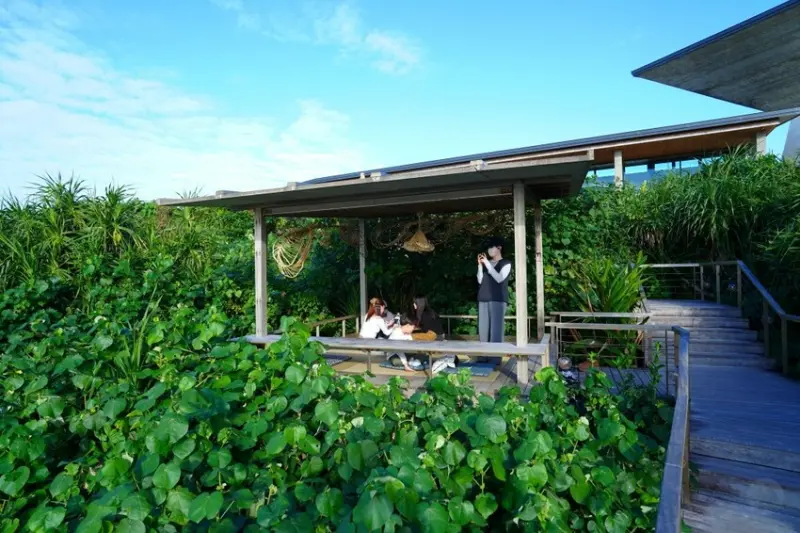 不得不說,星野集團真的很會挑地點!竟然能在這麼美的海灣蓋一座咖啡廳和餐廳,整個景色美到讓人拍個不停!而且這裡的建築設計超大器,隨便拍都像明信片一樣。不過因為整體空間很寬廣,一般相機真的很難一次拍進去,建議帶廣角鏡頭來,才能把這片夢幻景色完美收進畫面裡!