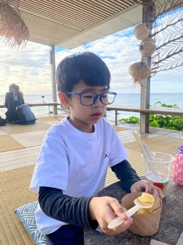 坐在塌塌米區喝著下午茶,真的超級愜意!吹著海風、看著無敵海景,整個人都放鬆下來了~完全是一種享受人生的感覺