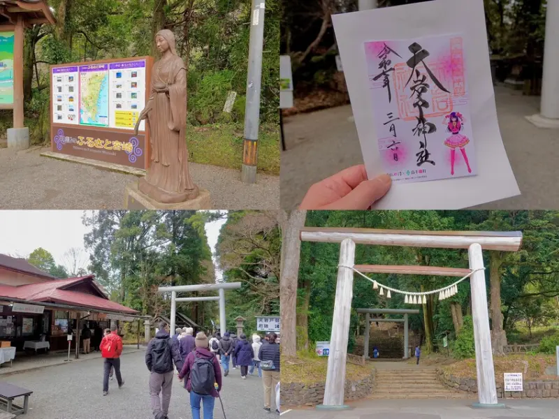 創立於1900年前的高千穗神社主要供奉天津彥彥火瓊瓊杵尊、彦火火出見尊・豊玉姫命、鵜鵝草葦不合尊・玉依姫命,初代天皇長兄三毛入野命,這座神社是我此次來宮崎最想來的,聽朋友說能量非常強大,神社內的巨木都超過百年以上歷史,最著名的就是神社內有一顆夫妻杉,同根生但分別長成兩顆大樹,傳説情侶夫妻一起來手牽手繞著夫妻杉走一圈會更加幸福美滿,另外還有樹齡已經超過800年的 秩父杉,以及創建神社時就有的鎮石,而每年的11月-2月,每週六晚上都會有高千穗夜神樂表演,另外如果有在收集神社御朱印的人,可以留意一下神社的御朱印,我這次就很幸運的一次收集了高千穗神社與天岩戶神社期間限定的御朱印,是動漫我推的孩子!超開心的!