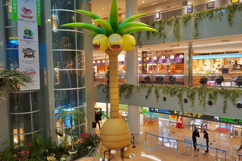 是寶可夢耶蛋樹(阿羅拉的樣子)!我在得知要前往宮崎時就很查了宮崎的寶可夢代表,結果是看起來好ㄎㄧㄤ的耶蛋樹(阿羅拉的樣子),在日本各縣市都有寶可夢代表喔,喜歡寶可夢的你們,也可以來找找,而為何是耶蛋樹(阿羅拉的樣子)作為宮崎寶可夢代表呢?因為不管你身處在宮崎哪裡,都會看到很多充滿南洋風情的棕櫚樹,而且是非常多,天氣好的時候,根本像置身在國外熱帶國家那樣溫暖熱情!這座高11公尺的耶蛋樹(阿羅拉的樣子)就在宮崎機場要往二樓的手扶梯旁,看到本尊真的會笑出來,怎麼那麼蠢啦!