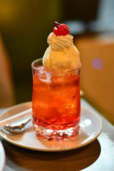 勛勛的冰淇淋蘇打,是石榴蘇打,也有綠色的是哈蜜瓜蘇打。