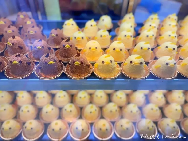 排了滿滿的小雞蛋糕,真的還滿可愛的,當天有原味、巧克力。聽說也有季節限定的草莓口味。