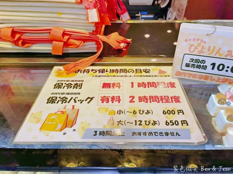 購買的時候店家會貼心的問要多久後才會吃,一小時間內有無料保冷劑,二小時左右的就多付點小錢囉