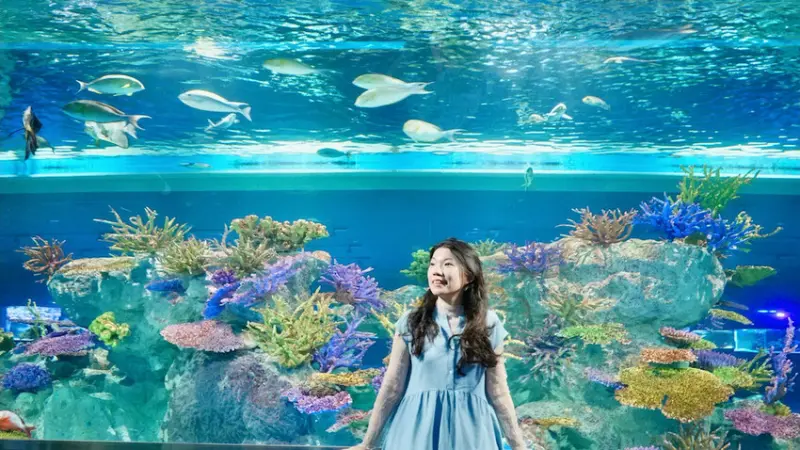 DMM水族館好玩又好拍照,有海洋生物區、可愛動物區,很多角落都能拍出漂亮的畫面,是一間適合大人小孩同遊的景點唷!