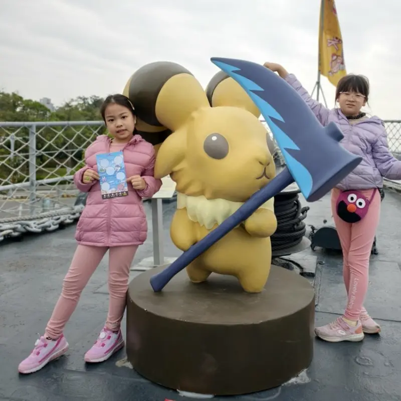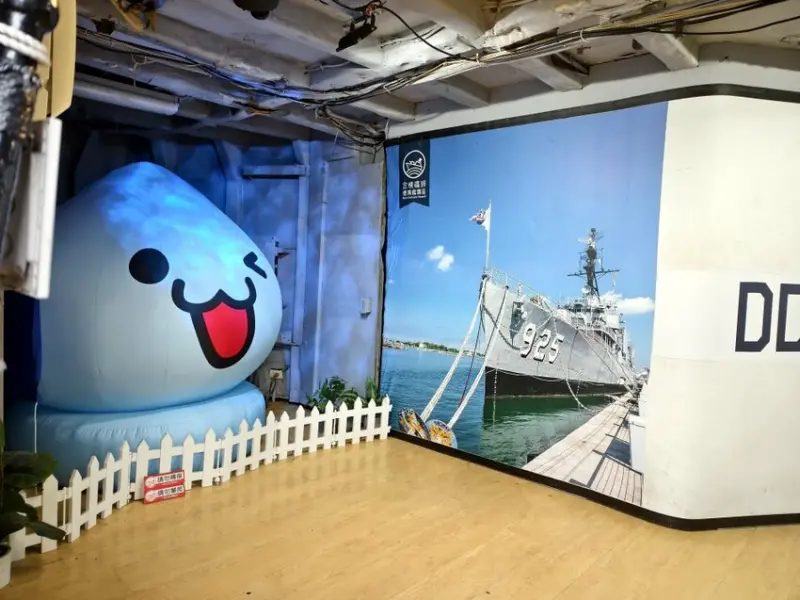 ▼裡頭還設有拍照打卡區,在威風的軍艦旁就是可愛的角色,整個變得很童趣啊!