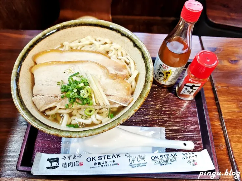 這道菜有著沖繩獨特的食材,結合了豬肉的嫩滑和蕎麥麵的口感,豬玫瑰肉(即為豬的肩膀部位)經過精心調味,肉質鮮嫩多汁,與帶有輕微鹹香的湯底融合,搭配爽口的蕎麥麵,吃上一口便能感受到沖繩料理的精緻與美味