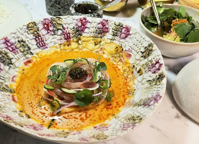 墨西哥開胃前菜,以白生魚片搭配辣椒、魚子醬及特製醬製作而成,是一道爽口的料理!!