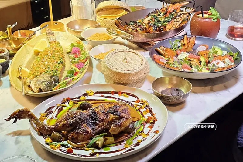 Ojo以傳統融合創意的現代墨西哥菜,還帶入不少泰菜元素,絕對讓你來到這邊不只是視覺滿足,更是能來上一場味覺的饗宴!!圖下這一桌是開胃前菜,你沒看錯它只是前菜,就讓人非常的驚艷、每一道不只是在擺盤上用心,味道更是好吃極了!!