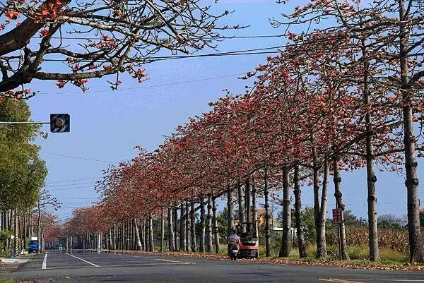 花季時,可欣賞滿滿的火紅色木棉花綿延在整條馬路上的場景,