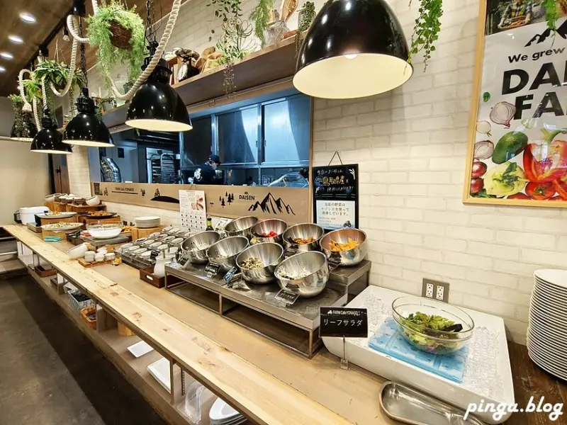 米子站前人工溫泉二股湯之華格林里奇飯店 Green Rich Hotel的早餐樣式不算多,但卻都營養滿分,有生菜沙拉、西式麵包、炸物、飯食、熱炒等,還有各式果汁及水果水,光只有看就覺得好養生的早餐~