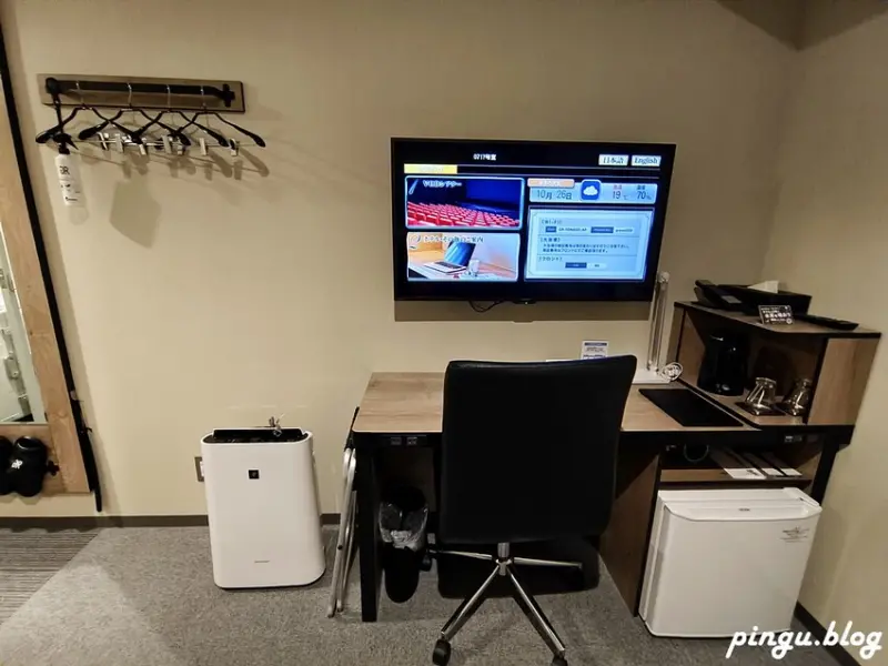 另有穿衣鏡、衣架及空氣清淨機~桌子也可以拿來工作或當梳妝台~電視上就有WIFI密碼,不用擔心沒網路~