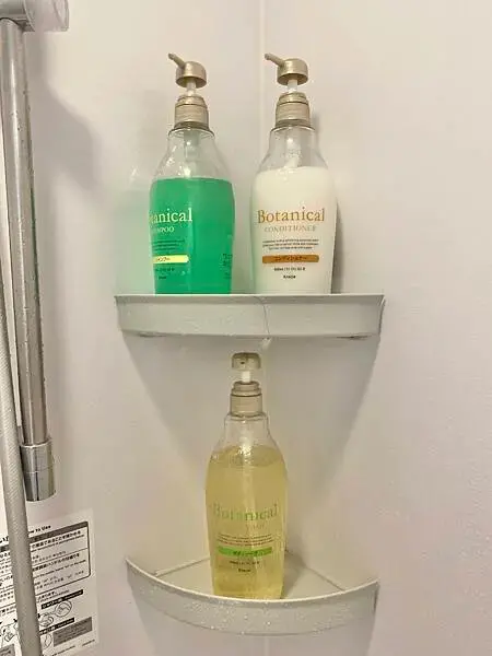 提供洗髮精潤髮乳和沐浴乳,還有一個可放置東西的平台