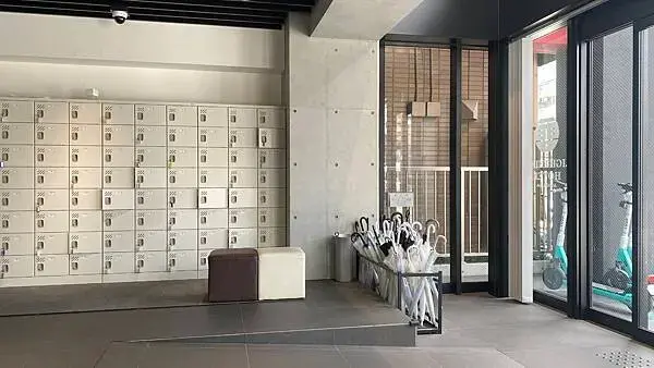 外面有垃圾桶和兩個販賣機還有共用廁所和洗衣房,方便長住或經常外出旅客使用
