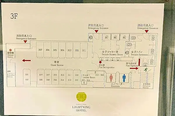 這次的房間位於3樓,電梯分性別,女性搭右側電梯,男性搭左側電梯